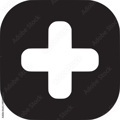 © Tayyab, Obraz premium A black square with rounded corners containing a white plus sign in the center on white background