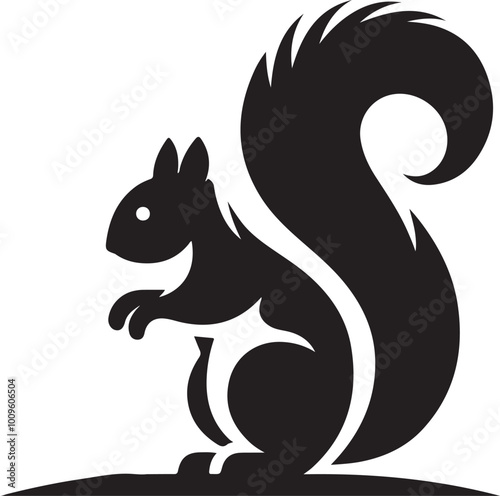 © cutsvg, Fototapeta premium A black squirrel with a roundeye and long tail on white background