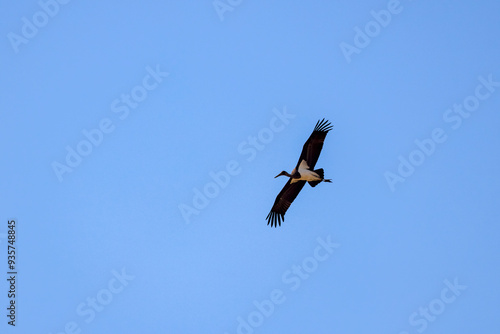 © czamfir, Fototapeta premium a black stork flying in the sky