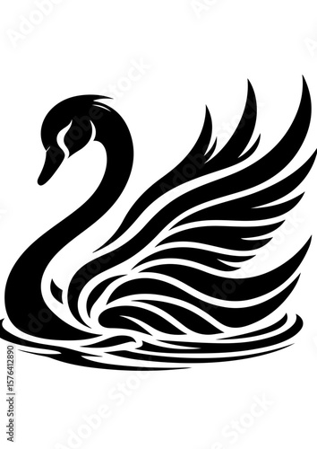 © MD, Obraz premium A black swan gracefully glides across the water, isolated on white background