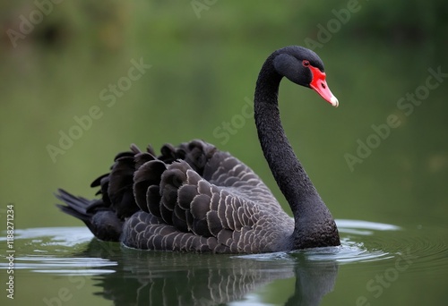 Fototapeta premium A black swan is swimming in a pond