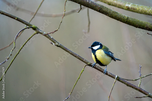 © LDC, Naklejka premium a black-tit bird on a branch in winter