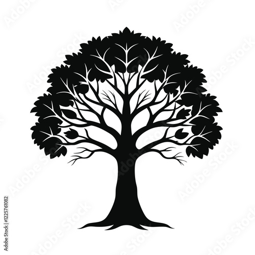 © Nadia01, Obraz premium A black tree silhouette on a white background