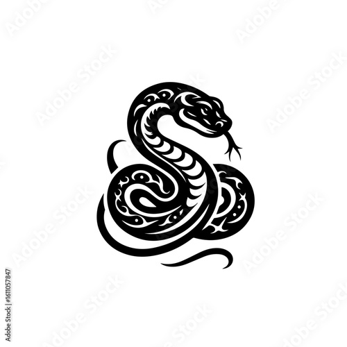 Fototapeta premium A black tribal silhouette of a coiled snake
