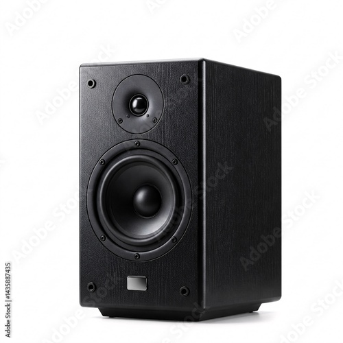 Fototapeta premium A black two-way bookshelf speaker, isolated on a white background