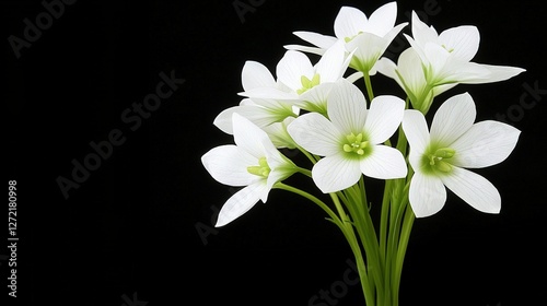 © Olga, Obraz premium A black vase filled with white flowers stands against a dark background