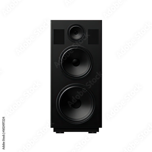 Fototapeta premium A black, vertical speaker with three large woofers