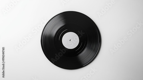 Fototapeta premium A black vinyl record centered on a white background, ideal for showcasing...