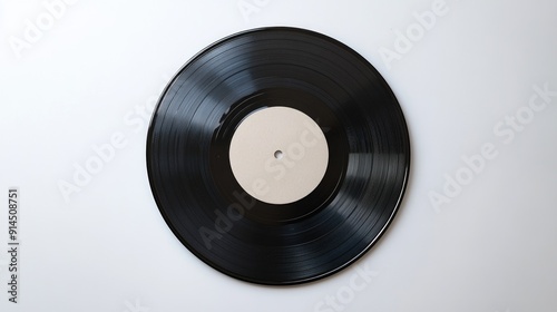 © Alexander Chaykin, Obraz premium A black vinyl record stuck on a white wall