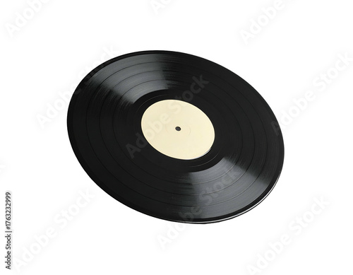 Obraz premium A black vinyl record with a cream label, against a stark black background