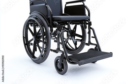 Fototapeta premium A black wheelchair with large wheels and footrests, designed for mobility...
