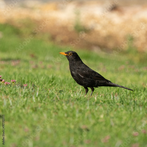 © Moshe Einhorn, Obraz premium A Blackbird on a Lawn