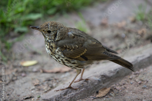 © Aisatsanasun, Obraz premium A blackbird on the ground.