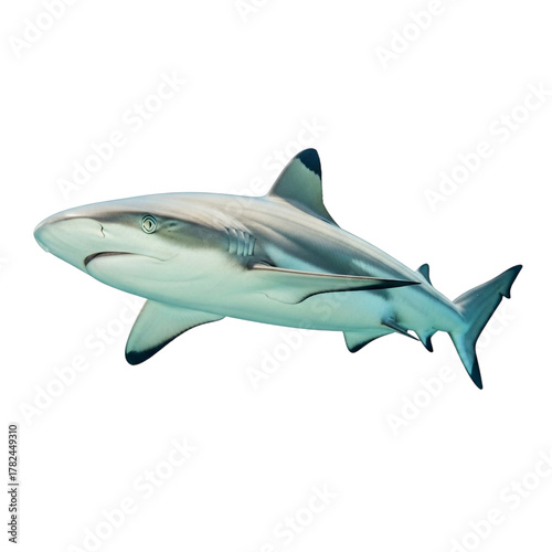 © md, Fototapeta premium A blacktip reef shark swimming in clear blue water, isolated on transparent background