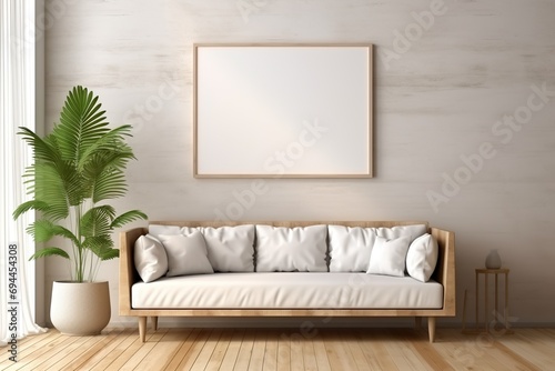 © jakapong, Naklejka premium a blank mockup frame, in a living room white modern