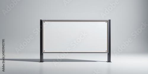 Obraz premium A blank white billboard with a dark gray metal frame stands in a minimalist gray space studio