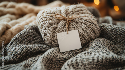 Fototapeta premium A blank white laundry label on a casual denim shirt, with the rugged texture...