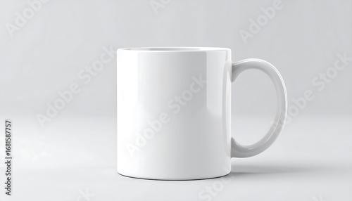 © Faren, Obraz premium A blank white mug stands out against a neutral background, showcasing a simple yet elegant design.