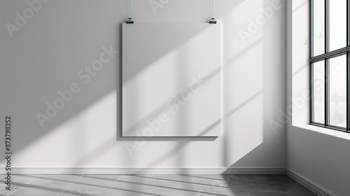 © Alief Shop, Fototapeta premium a blank white paper hanging on white wall