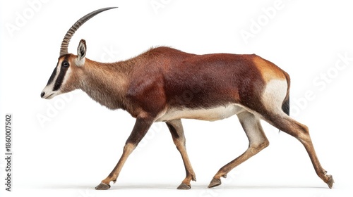 © Yothin, Fototapeta premium A Blesbok Antelope Walks Gracefully In A Studio With A White Background