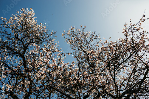 © Cavan, Fototapeta premium A blooming almond tree in warm spring sunshine