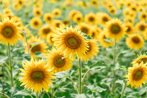 © fotolesnik, Obraz premium A blossoming sunflower flower close-up