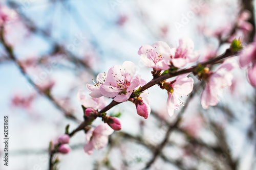 © julialototskaya, Fototapeta premium A blossoming tree is a peach. Flowering tree.