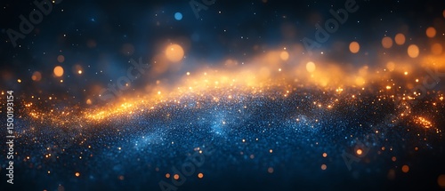 © Jumali, Fototapeta premium A blue and gold sparkling celestial galaxy background display