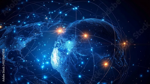 Fototapeta premium A Blue and Orange Digital Earth with a Connected Network