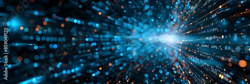 © inspiretta, Naklejka premium A blue and orange light show with a lot of dots. The light show is very bright and colorful