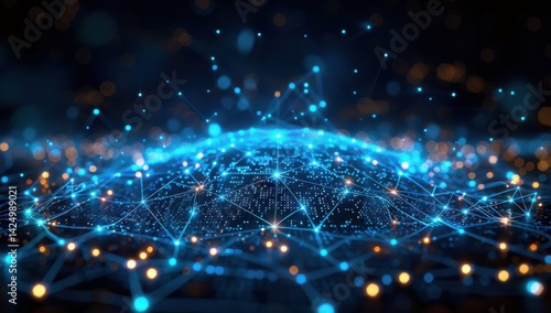 © hakule, Obraz premium A blue and orange lighted pattern with many small dots