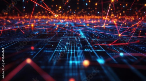 Fototapeta premium A blue and orange line pattern with many dots