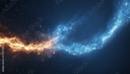 © vivekFx, Obraz premium A blue and orange nebula with a red streak