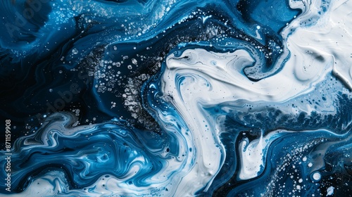 Obraz premium A blue and white ocean with a lot of white paint splatters