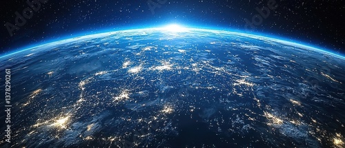 Fototapeta premium A blue and white planet with a bright sun in the middle