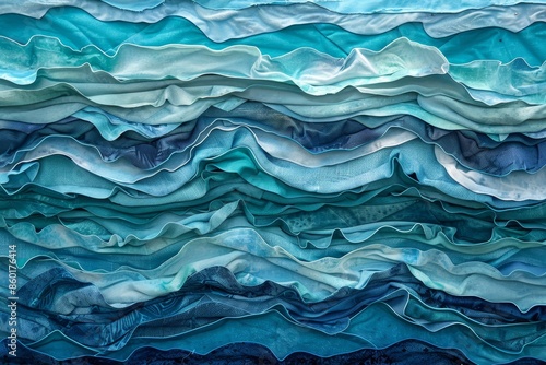 © PZPIXEL.AI, Obraz premium A blue and white quilt with a wave pattern generated by AI