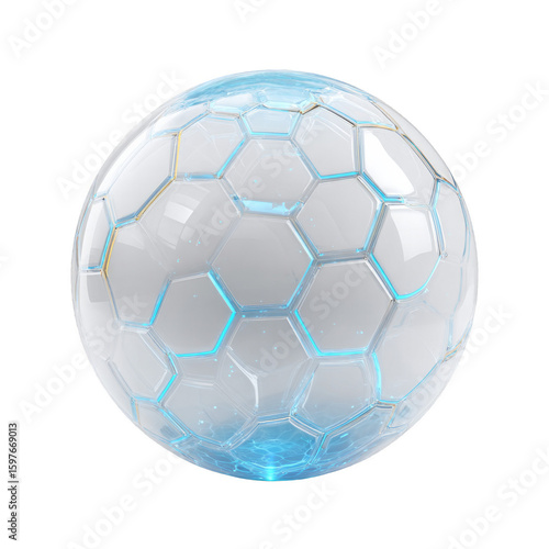 Fototapeta premium A blue and white soccer ball with a hexagonal pattern