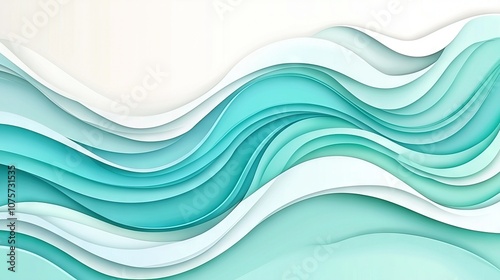 © Olga, Fototapeta premium A blue and white wavy background with a white background and a light blue wave on the right side of the image