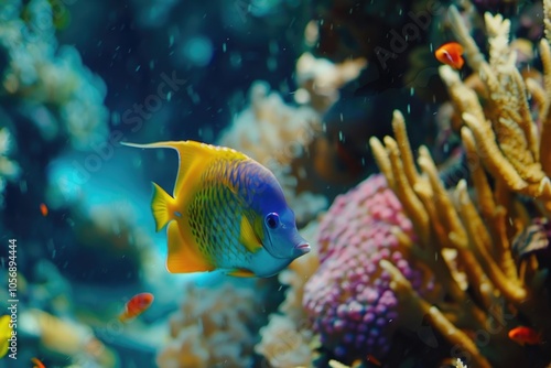 © Vii, Obraz premium A blue and yellow fish swimming in an aquarium