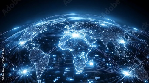 © NCSF, Obraz premium A blue background with an abstract representation technology network connection earth
