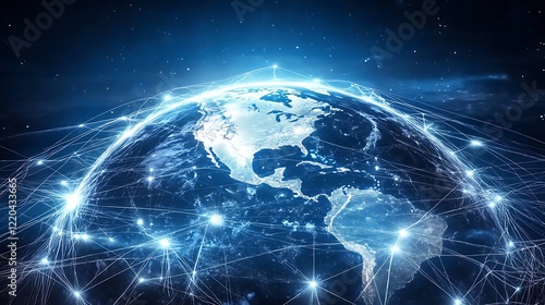 © NCSF, Obraz premium A blue background with an abstract representation technology network connection earth