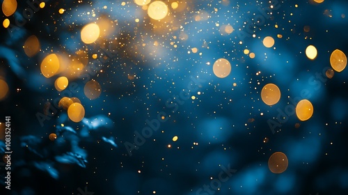 Obraz premium A blue background with golden bokeh lights blur, Abstract glow light blur bokeh background