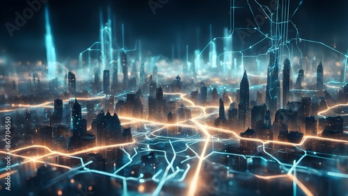 © rizkan, Fototapeta premium A blue background with many small dots that look like stars