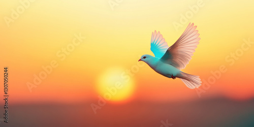 © Pisahouse, Obraz premium A blue bird soaring against a vibrant sunset backdrop.