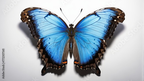 Fototapeta premium A blue butterfly in close-up against a pristine white backdrop, accompanied...