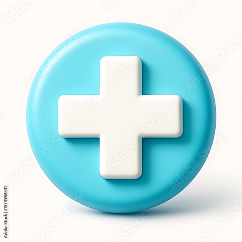 © Render Alchemy , Fototapeta premium A blue button with a white plus sign isolated on white background symbolizes addition