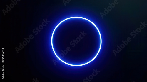Fototapeta premium A blue circle is lit up in the dark