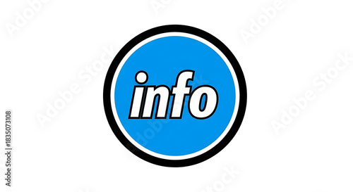 Obraz premium A blue circle with the word info in white and a black outline on a white...