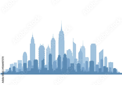 © PNG Stock, Fototapeta premium A blue city skyline silhouette with various buildings and towers, isolated on transparent background