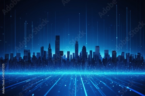 Fototapeta premium a blue city skyline with lines and stars in the sky